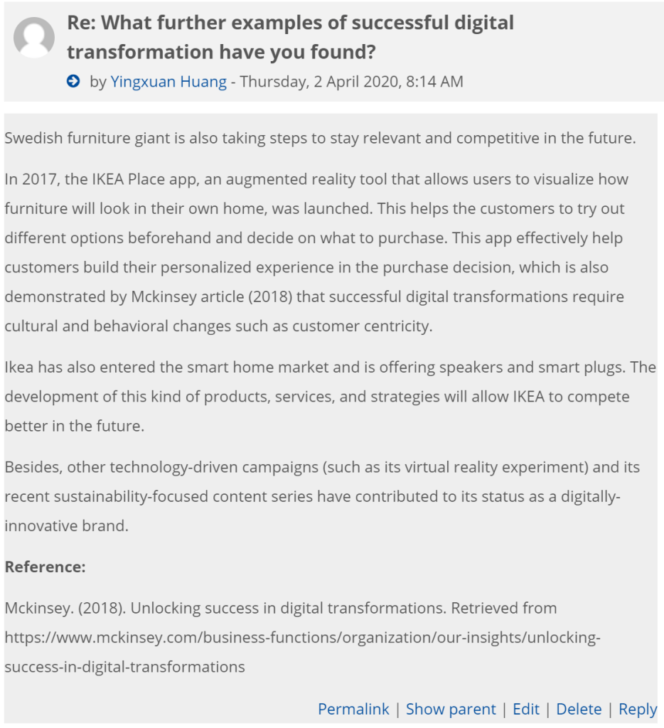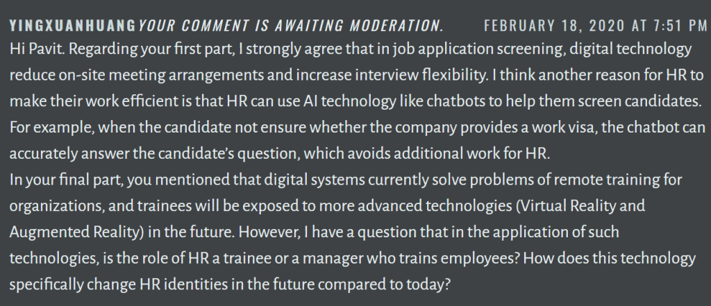 After completing my first blog about digital HR with the effective information I collected, I gained a lot of insights on digital transformation, so I contributed to the discussion in week 7. (Figure 2)
